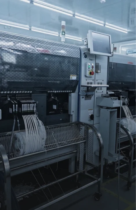 Micro-components are mounted onto PCBs using high-precision SMT lines for minimal error.